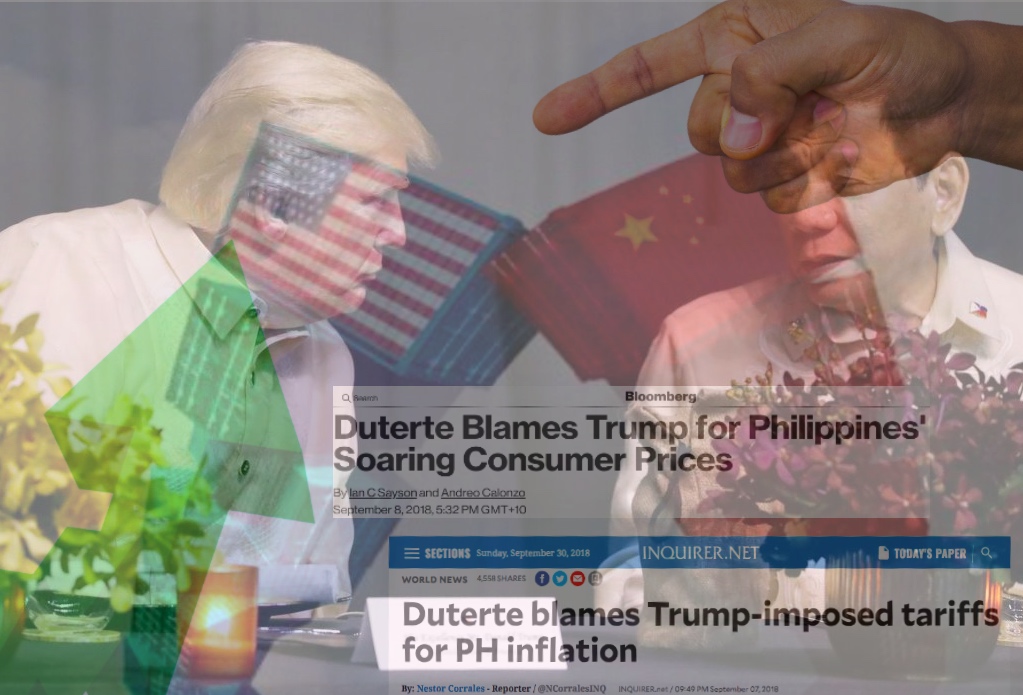 Ayon sa mga economist, maraming bagay ang ang sanhi ng mas mataas na inflation. Subalit kung si Pangulong Duterte ang inyong tatanungin, walang ibang dapat sisihin dito kung hindi si US President Donald Trump.