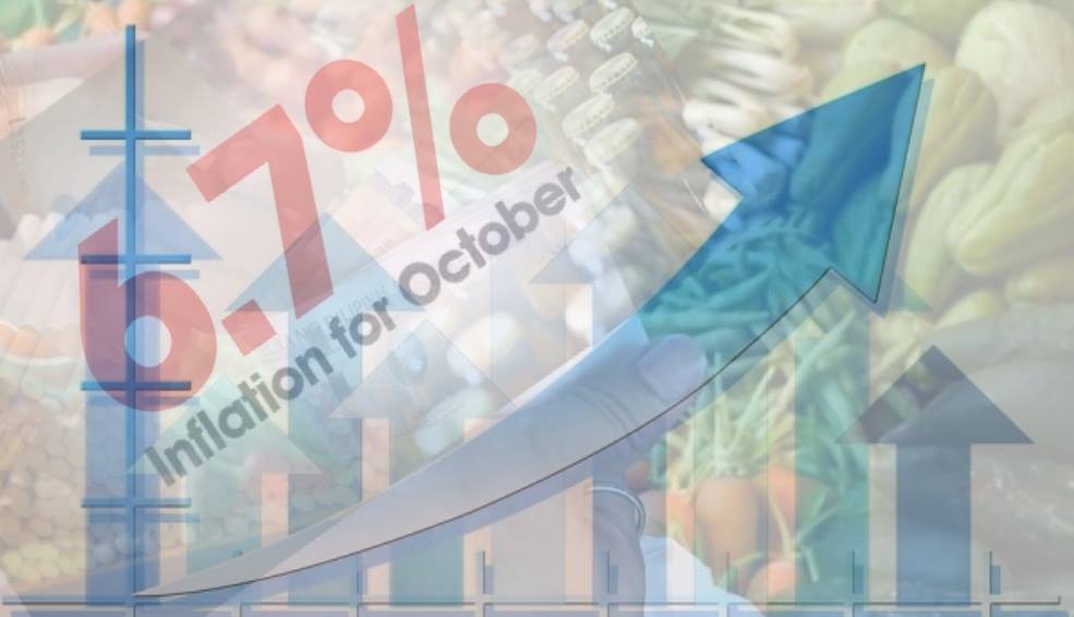 Base sa pinakabagong datos, nanatili sa 6.7% ang headline inflation rate noong Oktubre, katulad ng lebel nito noong nakaraang buwan (orange na linya sa Figure 1).